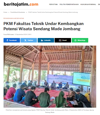 Jombang (beritajatim.com) – PKM (Program Kemitraan Masyarakat) Fakultas Teknik Undar (Universitas Darul Ulum) Jombang Jawa Timur melakukan pengembangan wisata Sendang Read More …