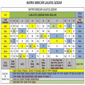 - Jika awal Ramadhan hari Sabtu, maka Lailatul Qadar pada malam 21